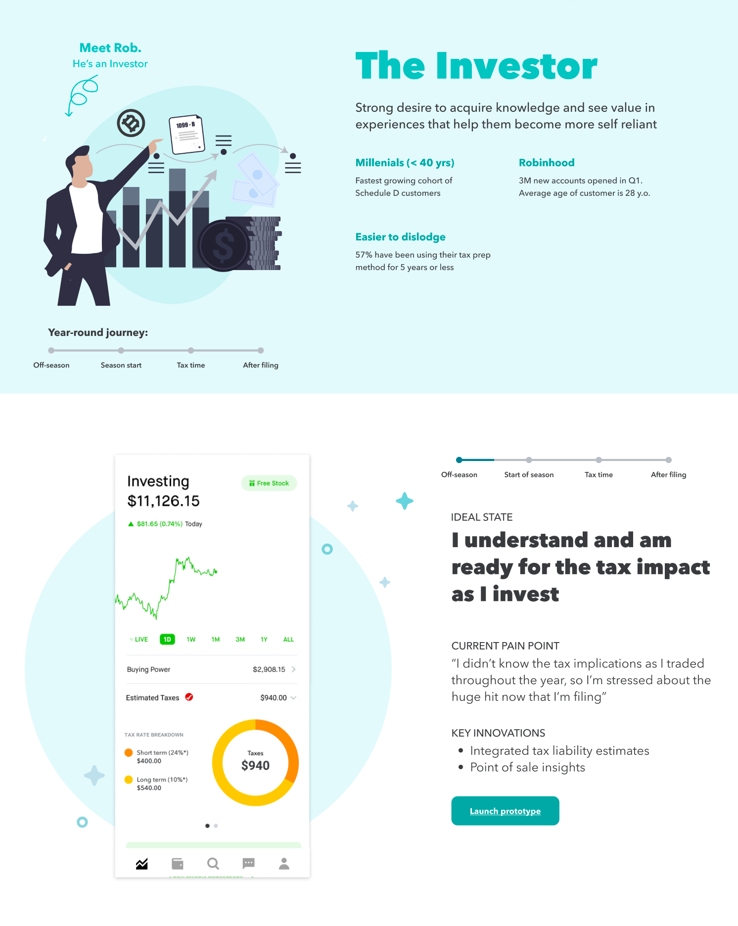 In October of 2021, I assumed leadership of the Turbotax Growth design team, where I guided the development of 15+ multi-disciplinary designers, shaping the evolution of the brand’s core products and new digital experiences to generate more than 22% revenue growth across Investor and Self-Employed customer segments.