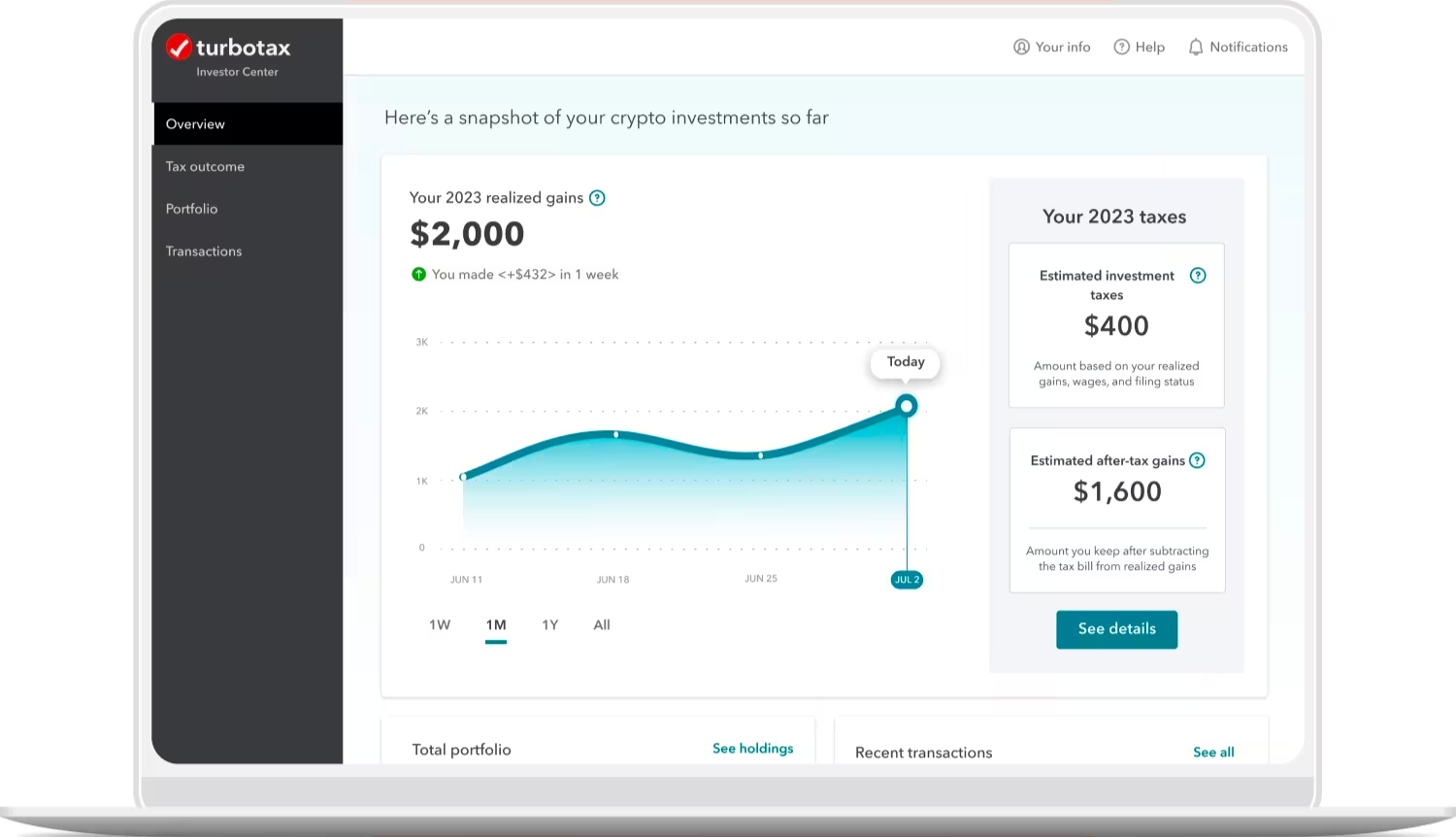 Tax planning for your investment portfolio, with insights on your tax outcome and automatic import for crypto investments